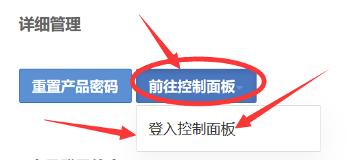 3.点前往控制面板,再点登入控制面板(刚开通的机器一般5分钟后才能管理)