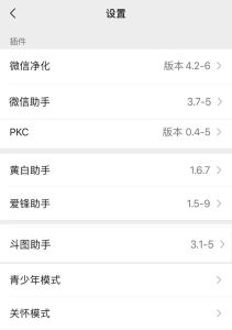 iPhone黄白助手微信插件下载,支持很多的好玩功能,发送网络语录舔狗日记骂人等文案 或者4K原图手绘壁纸等,抢私聊红包 自定义信息尾巴 自定义拍一拍 百变小尾巴 实时尾巴时间等功能 。